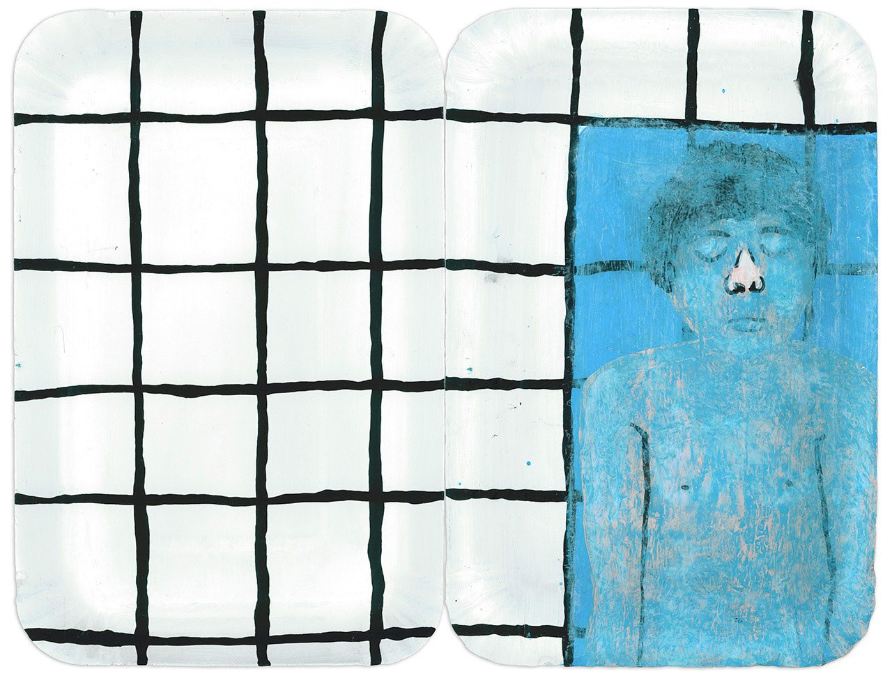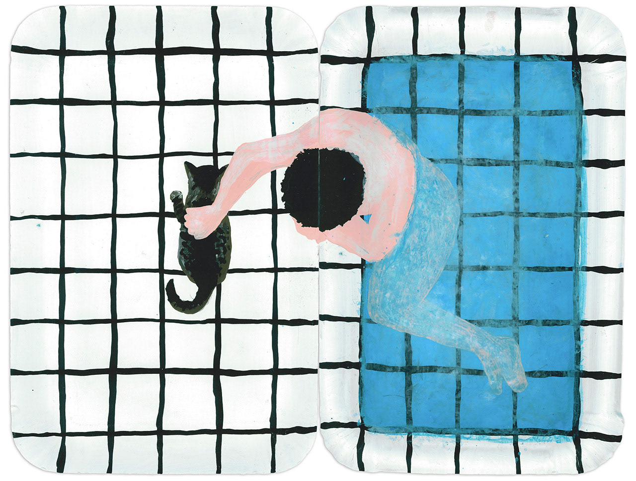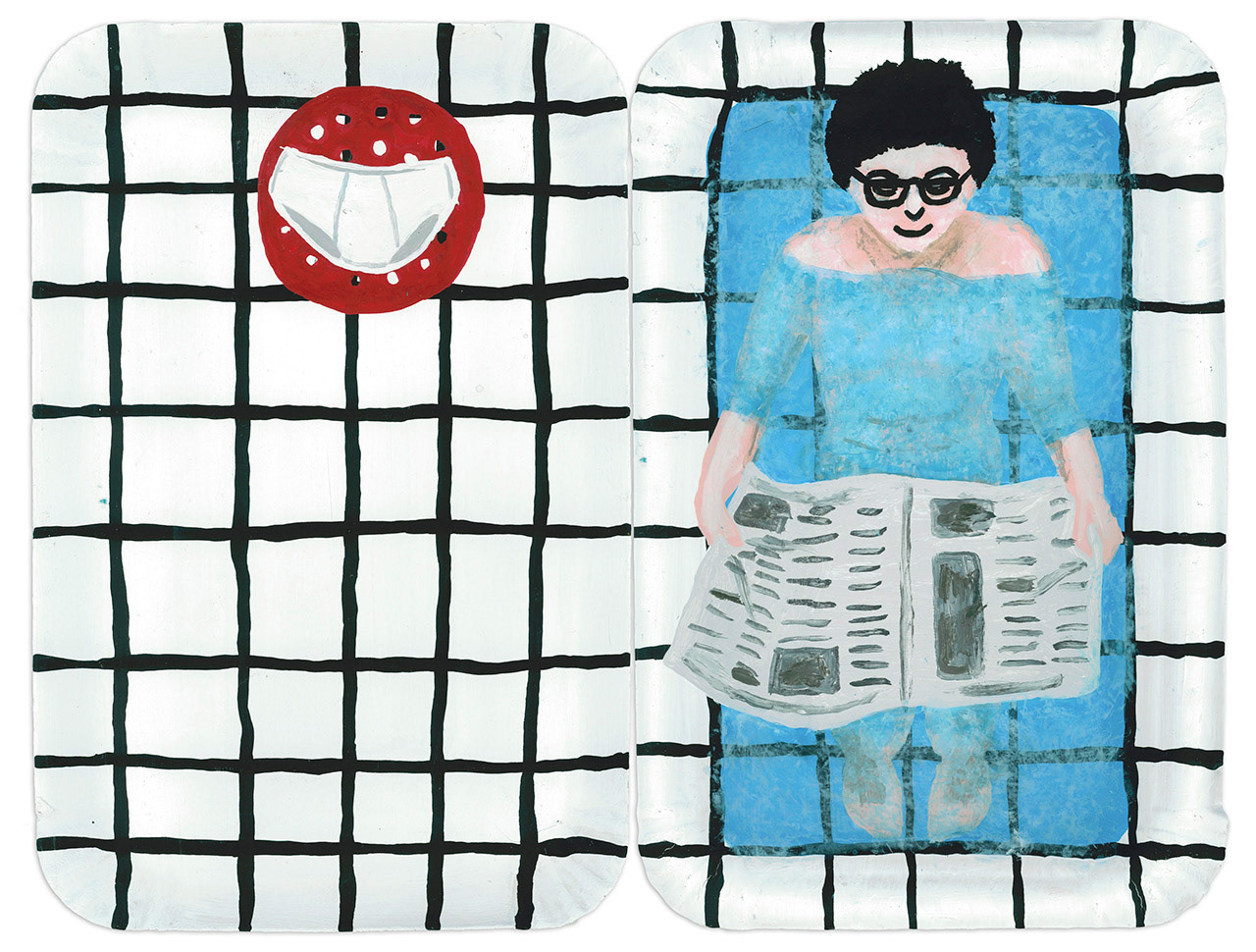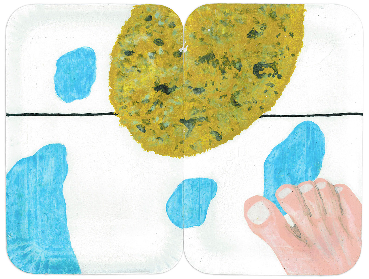 Eine wortlose Geschichte, mit Acryl auf Pappteller gemalt.