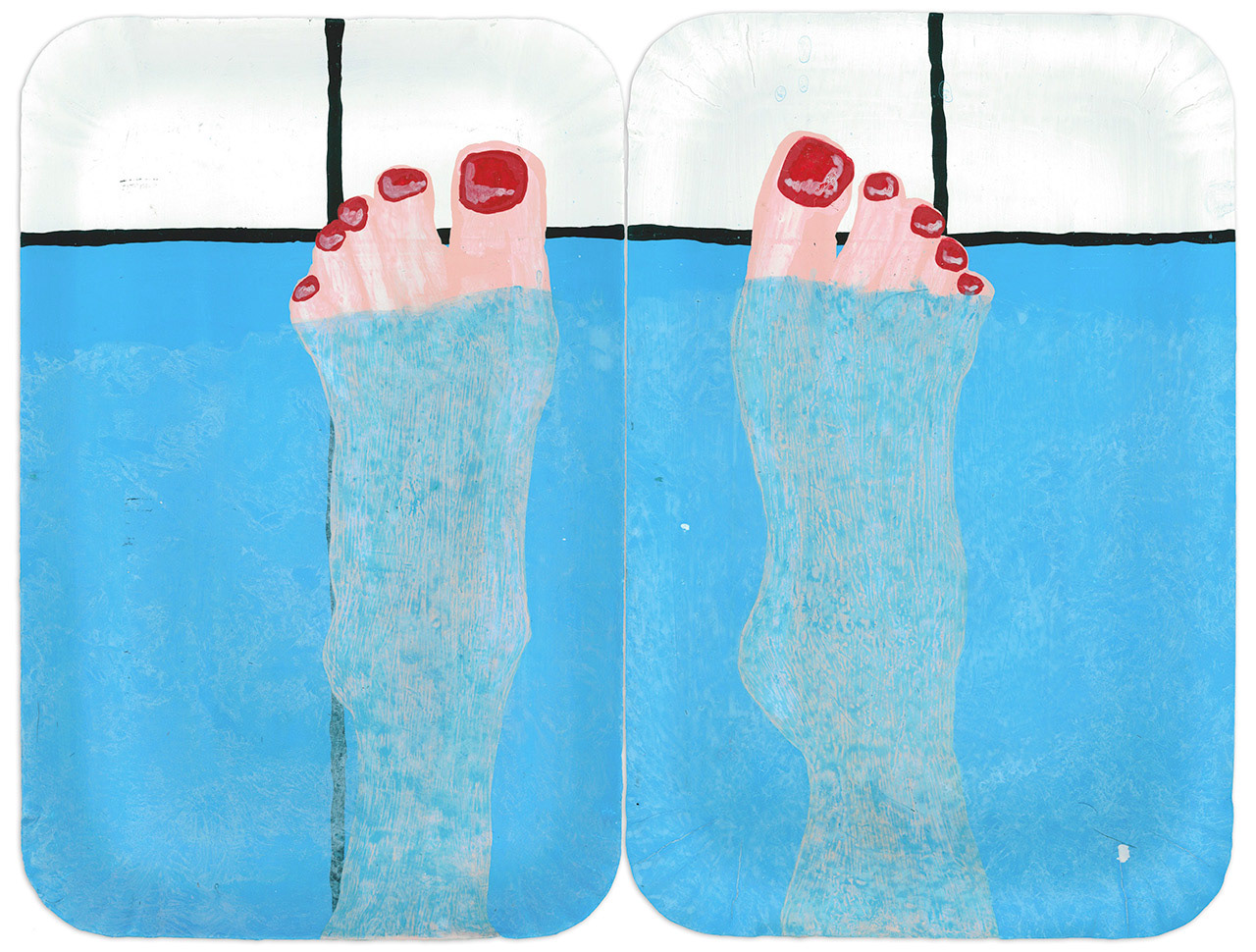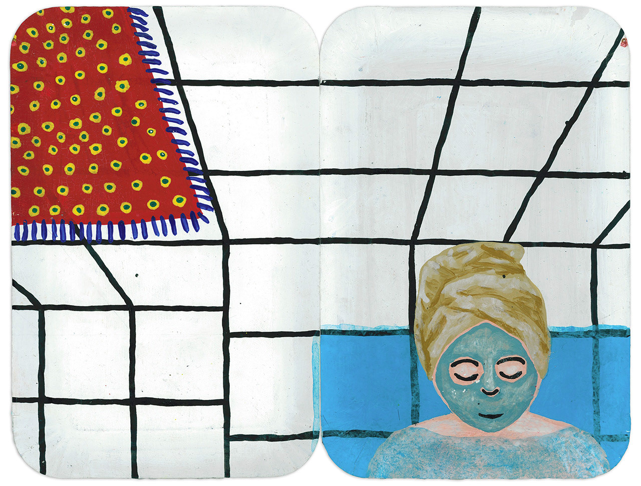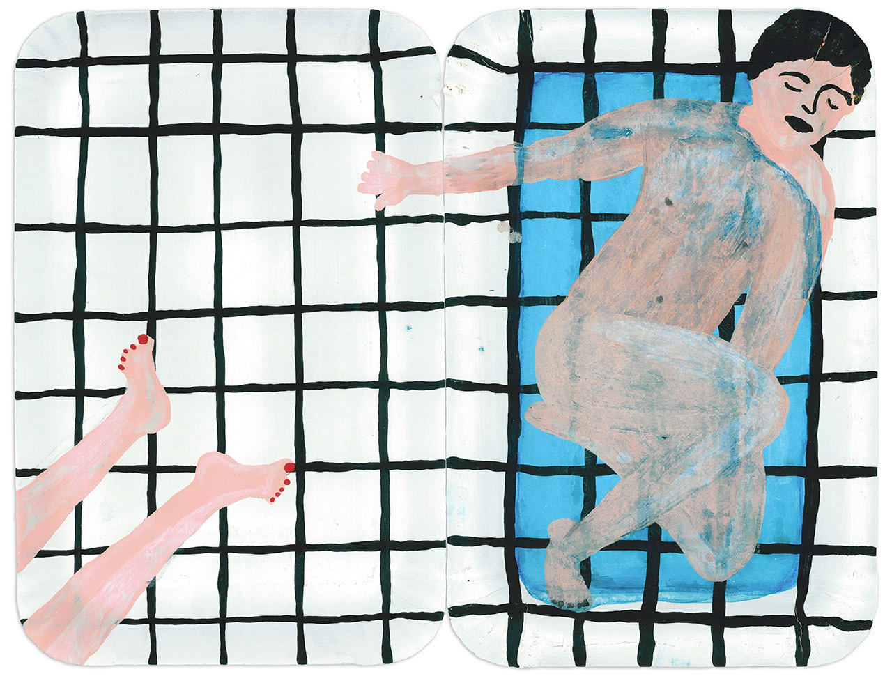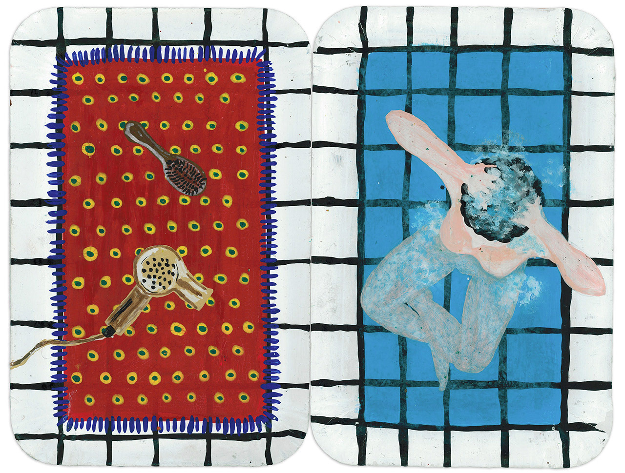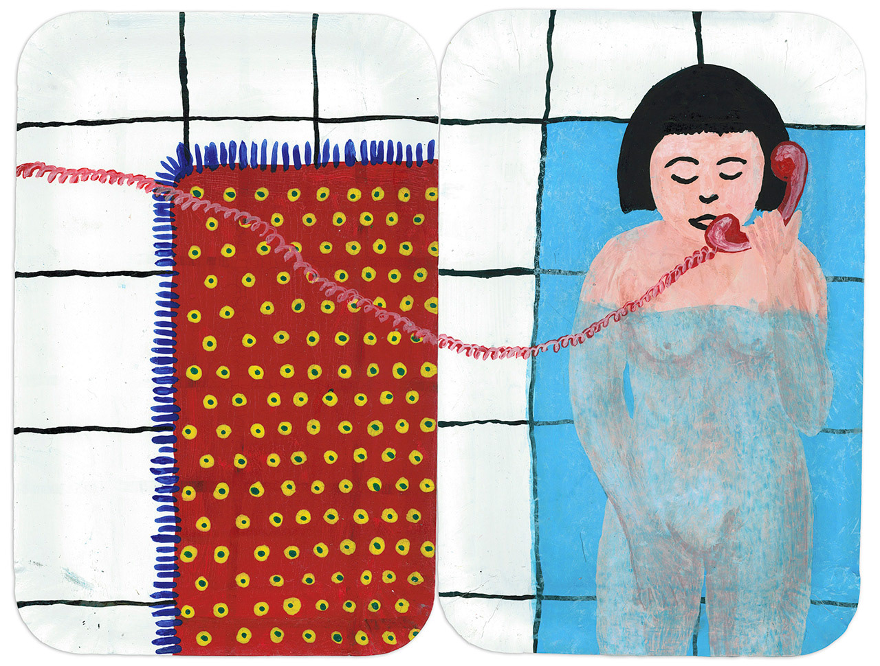 Eine wortlose Geschichte, mit Acryl auf Pappteller gemalt.